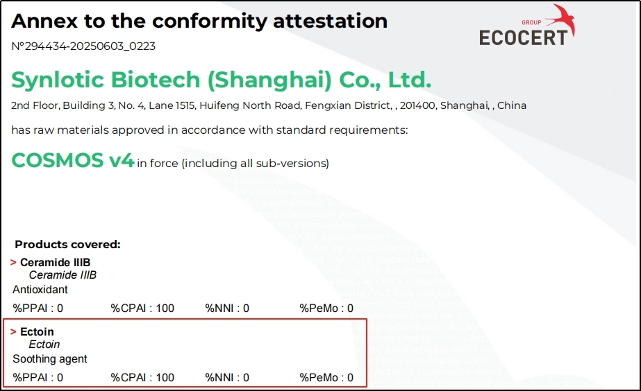 Nyligen har Yikeduoyin producerat av Shanghai Yunluo erhållit EU COSMOS naturliga certifiering som beviljats av ECOCERT i Frankrike.
